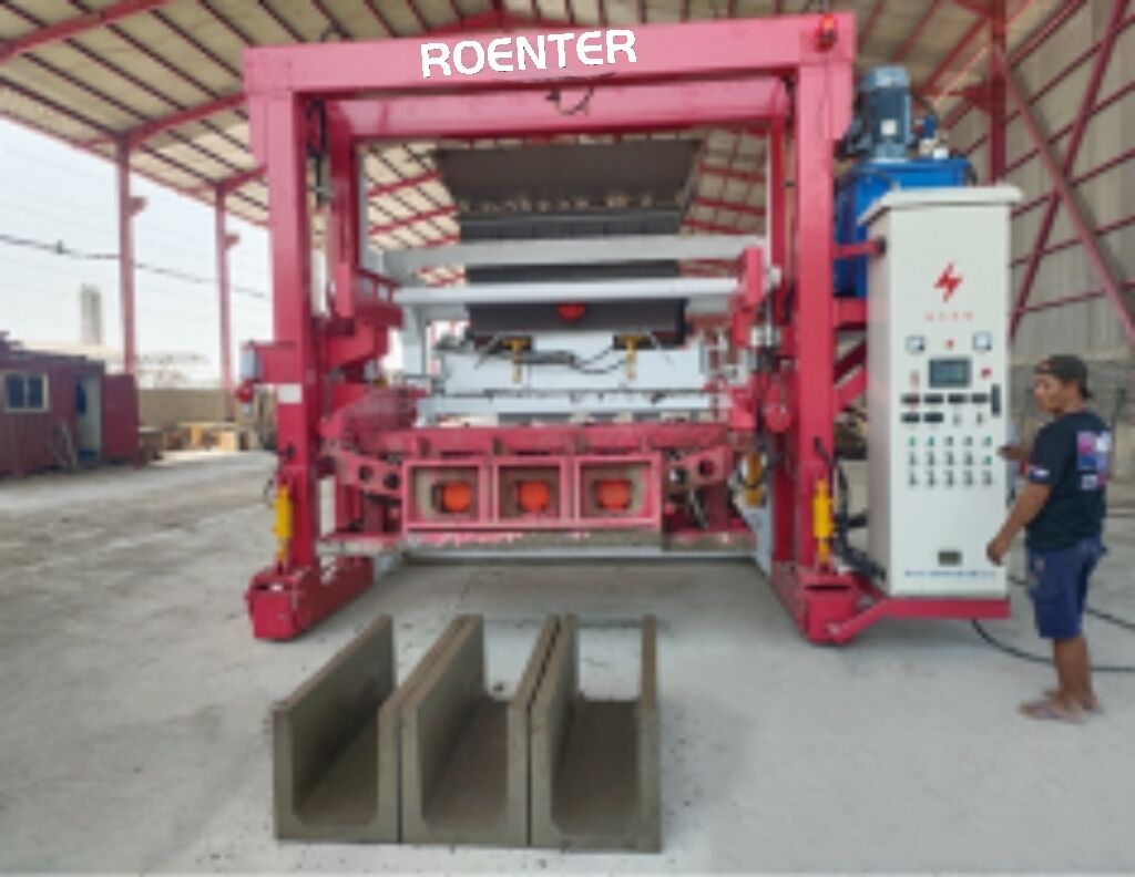 Este modelo es una máquina de moldeado de productos de cemento que integra el control electrónico, la presión hidráulica y la neumática.